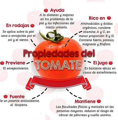 El tomate es considerado fruta y hortaliza, proporciona un gran número de antioxidantes eficientes para combatir diferentes formas del cáncer. Es fuente de vitaminas y minerales, protege contra las enfermedades cardiovasculares. Mejora la salud de los ojos y previene la hipertensión y las infecciones del tracto urinario. Contiene Licopeno, un antioxidante contra los problemas del cáncer que causan los radicales libres. Este beneficio se puede obtener incluso de productos de tomate procesados con calor, incluyendo la salsa de tomate.
